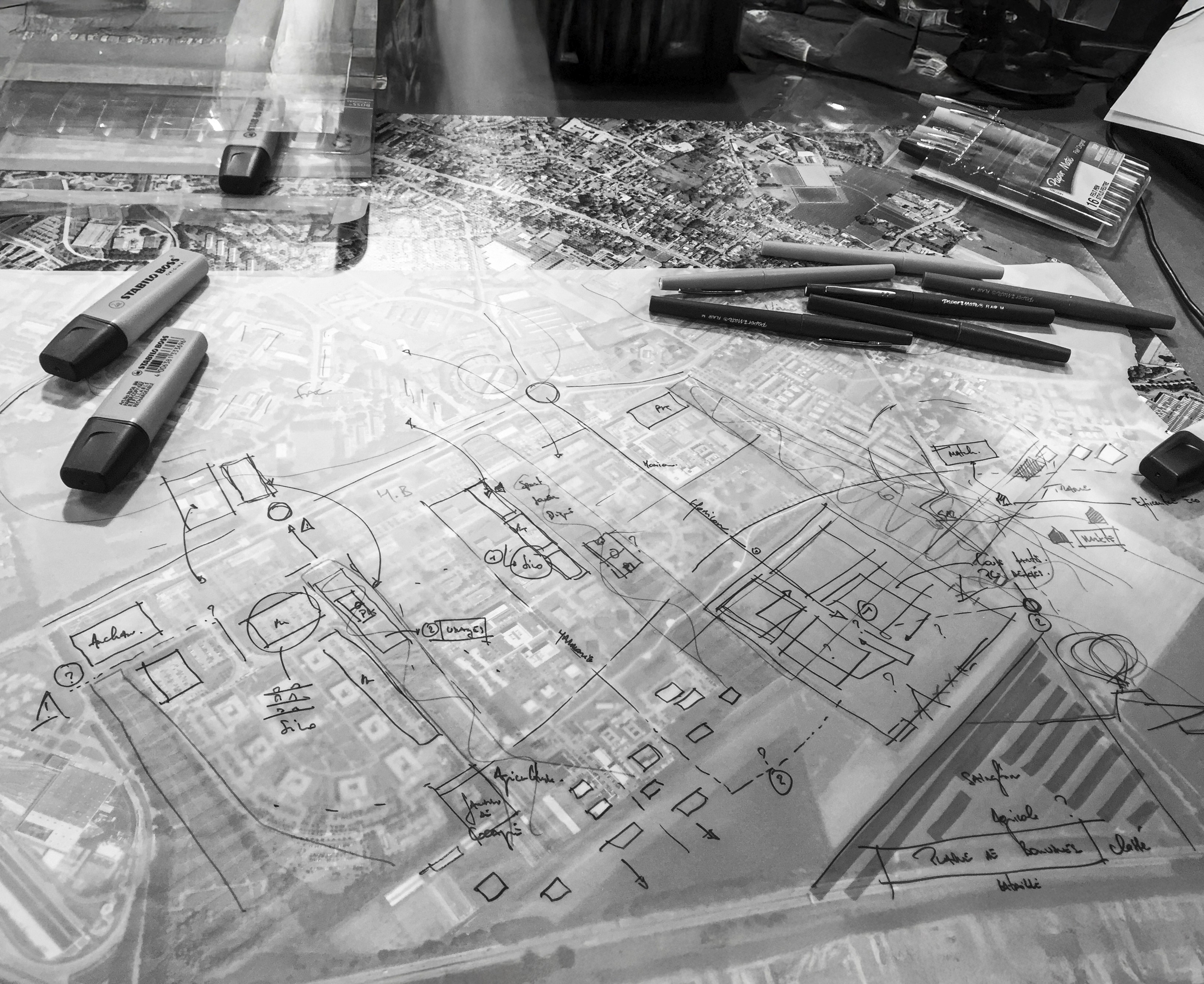 L’agence s’organise autour de deux piliers fondateurs, urbanisme et architecture, qui dialoguent en permanence. Le travail s’y mène de manière collective : chaque projet mobilise une grande partie de l’atelier.
