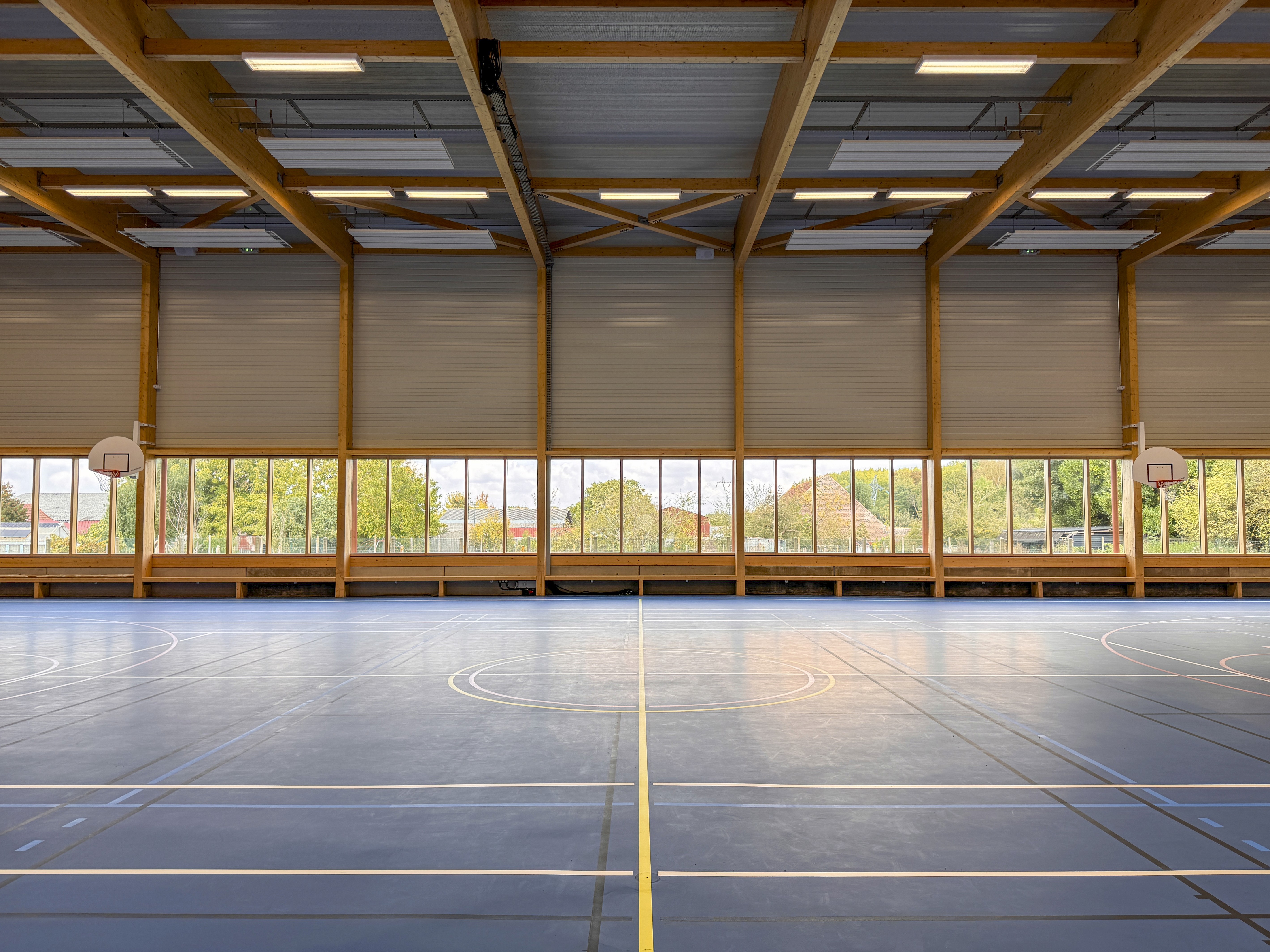 Nous n’avons pas seulement répondu à la commande d’une salle de sport. Très vite, il est apparu que le véritable enjeu dépassait largement le cadre de la parcelle : il s’agissait de réorganiser et de mettre en cohérence l’ensemble des fonctions et des équipements du centre-ville. La salle de sport, certes, mais surtout son inscription dans un projet plus vaste, intégrant les écoles, la crèche, le parvis, et plus largement tout le plateau des équipements.