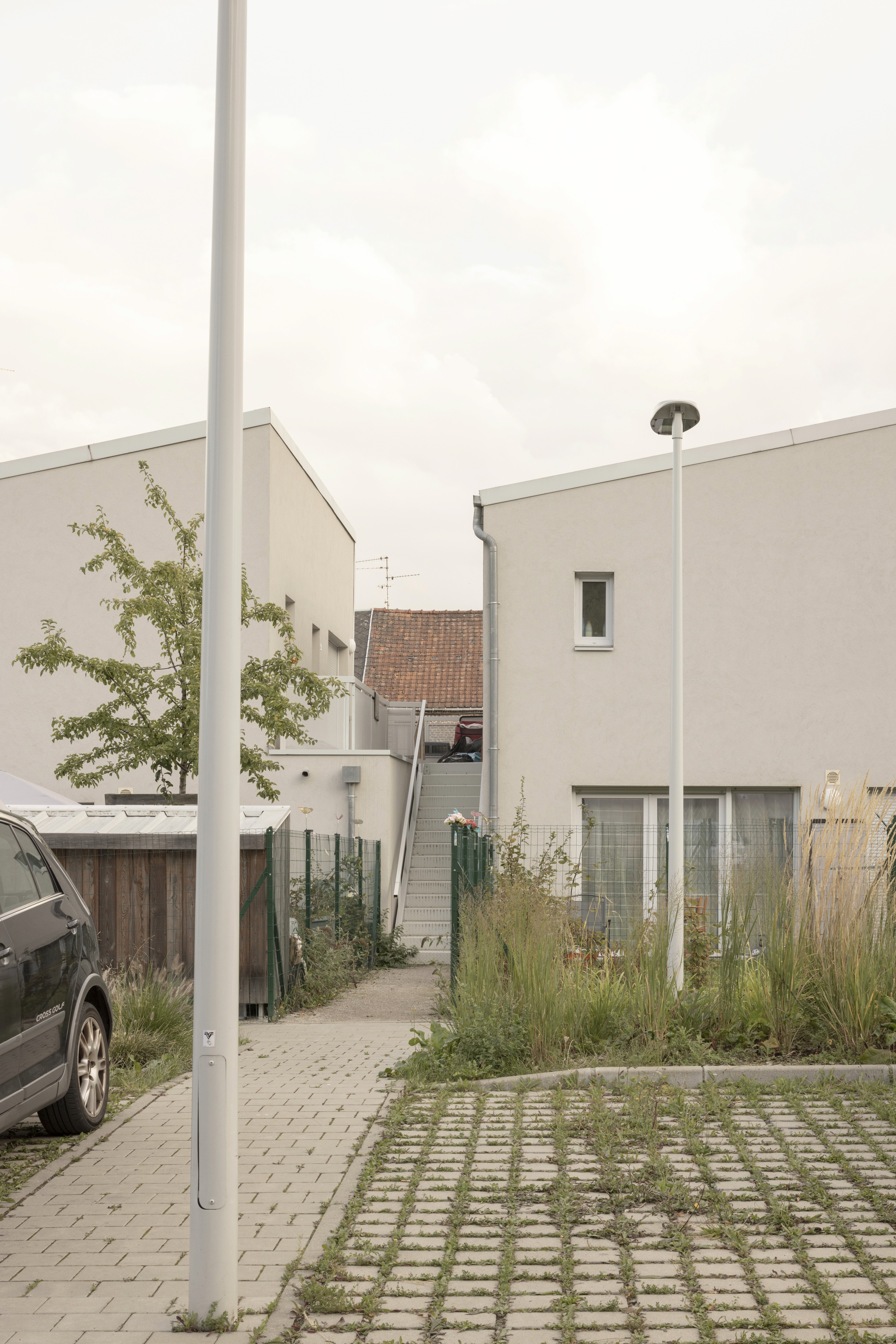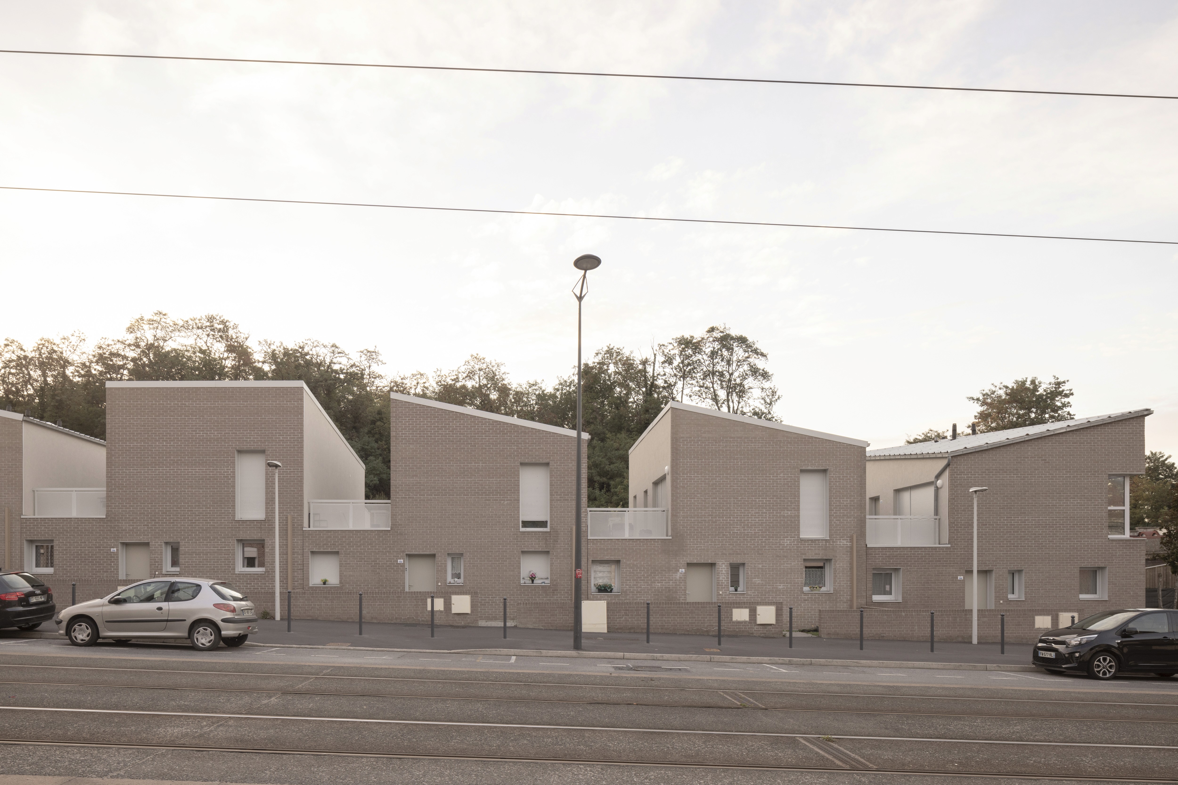 L’échelle du projet, gabarits et héberges tentent de maintenir les continuums existants. Toitures en pente, toit plat ponctuel. Ainsi, le projet s’inscrit dans le prolongement des trames, définissant un rythme de maisons en bande clairement identifiées. Les trames de logements de 6 m sont une réinterprétation de la maison 1930 pour devenir la nouvelle habitabilité, la maison 2030 ?