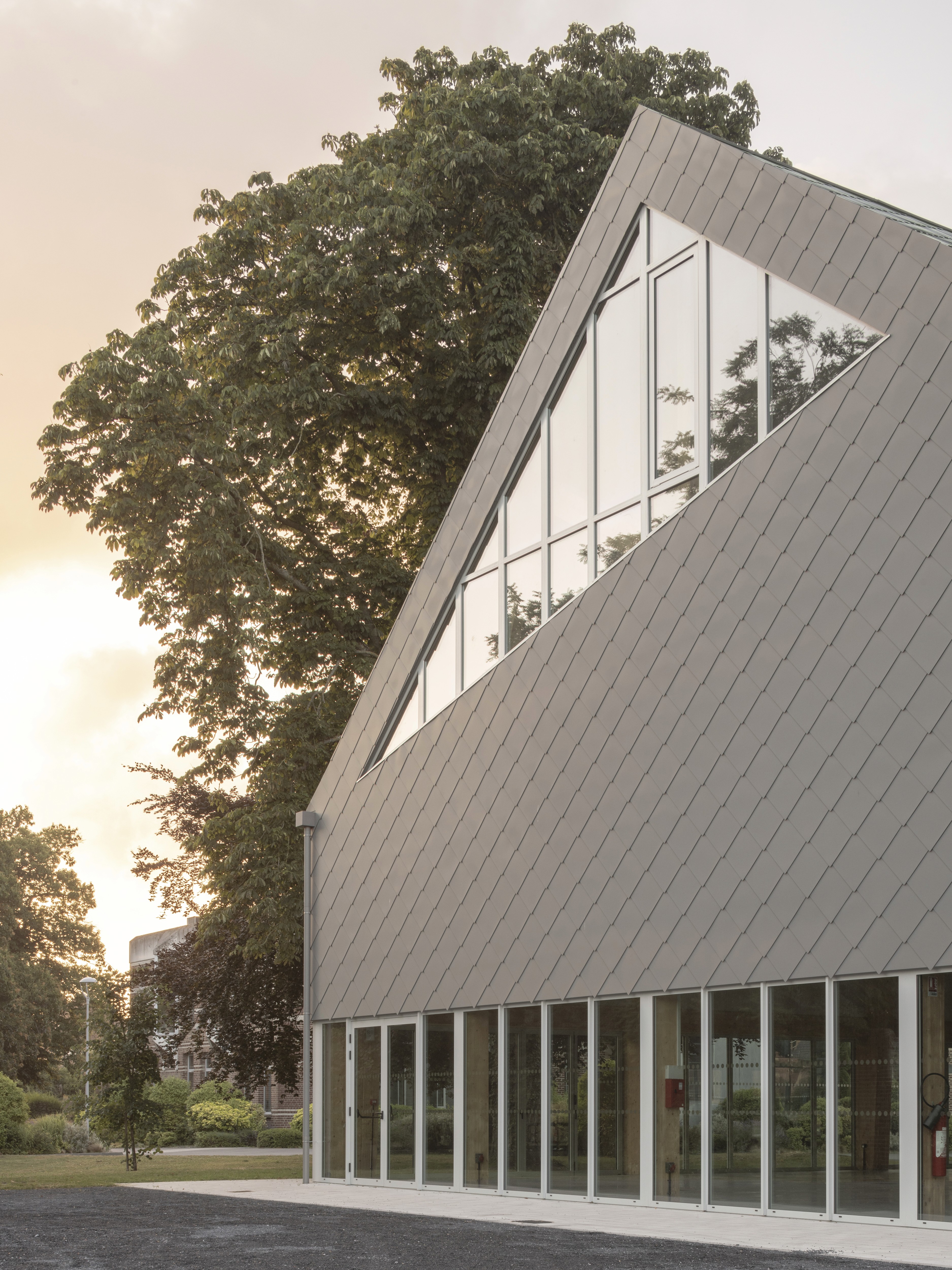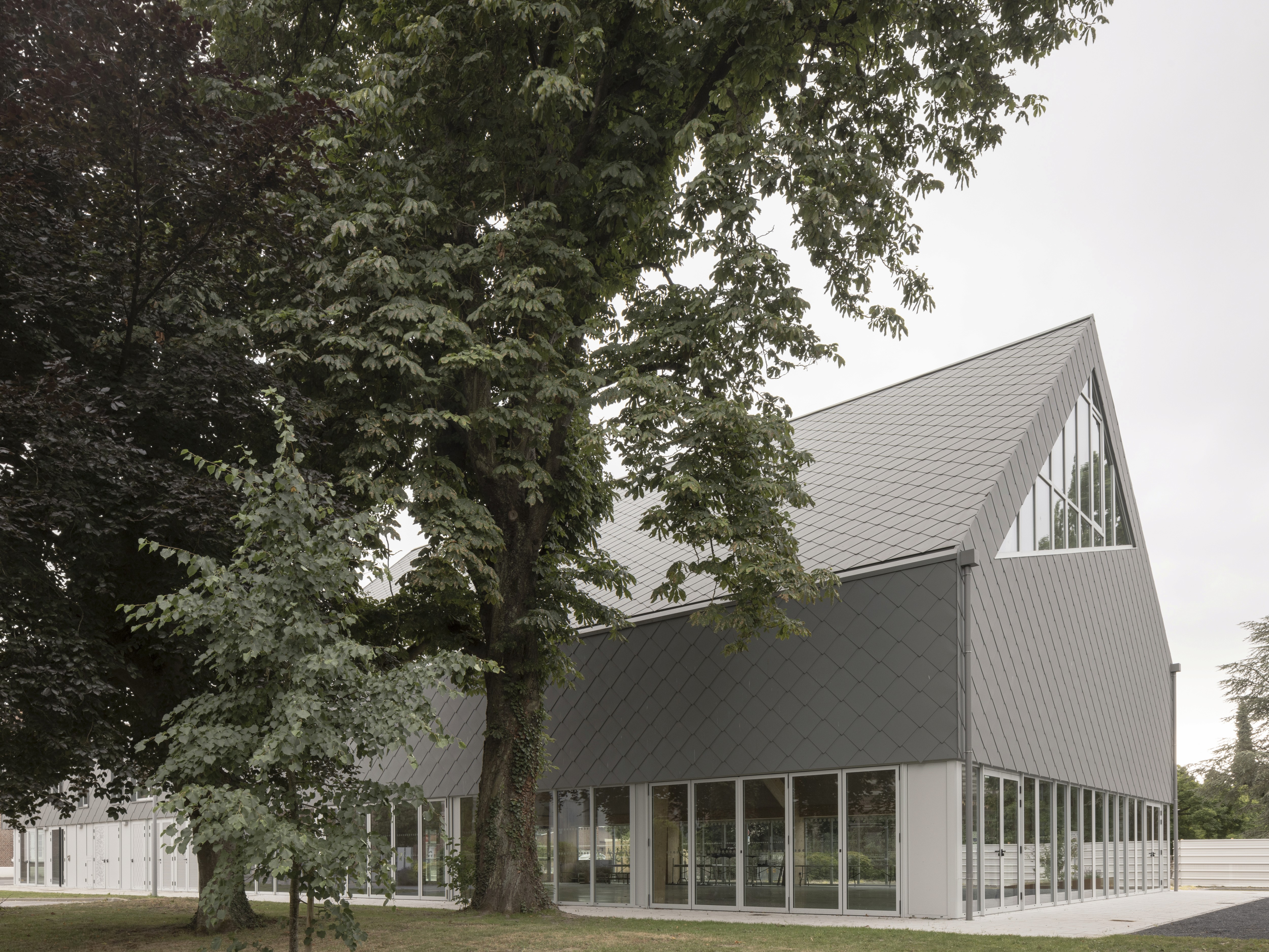 Située au cœur de Saint-Saulve, entre la mairie et les équipements sportifs, la halle polyvalente crée une nouvelle centralité identifiable. Elle accueille le marché hebdomadaire, mais aussi spectacles, activités scolaires, touristiques et événements divers. Une partie est dédiée à un tiers-lieu avec bureaux, restauration et boutique éphémère, renforçant son rôle de rotule urbaine. Sa volumétrie sobre privilégie la clarté des usages, la flexibilité et l’économie de moyens, avec un mobilier modulable.