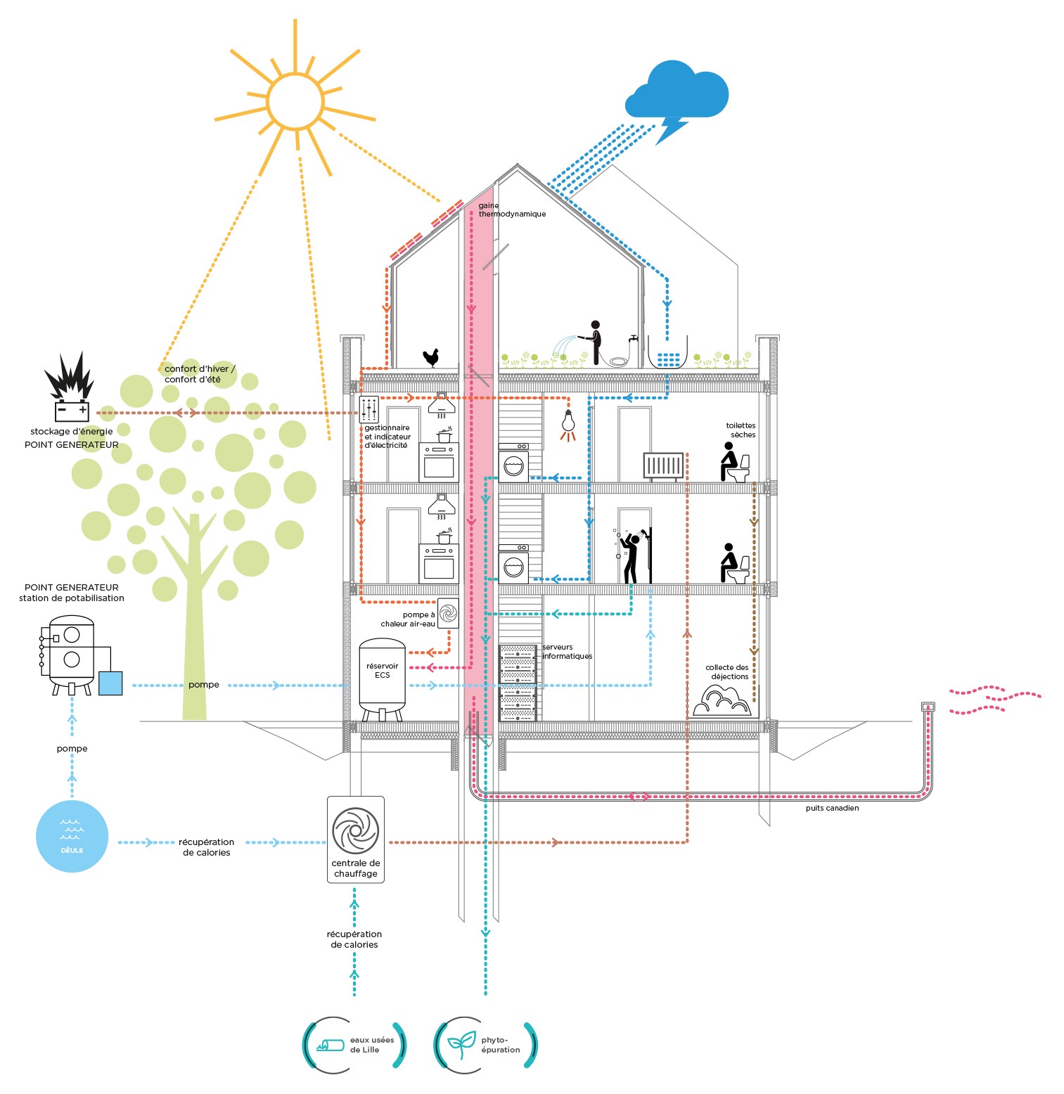 Sans programme préalable, tant du point de vue de la forme urbaine que de l’organisation des divers aspects de la vie des individus, il a fallu définir les grands axes de travail qui permettront de faire du quartier Vauban à Lille, un quartier Bas Carbone, un lieu de vie où les habitants-citoyens choisiront de s’inscrire dans un rapport au monde tout autre que celui que connaissent aujourd’hui les citadins.